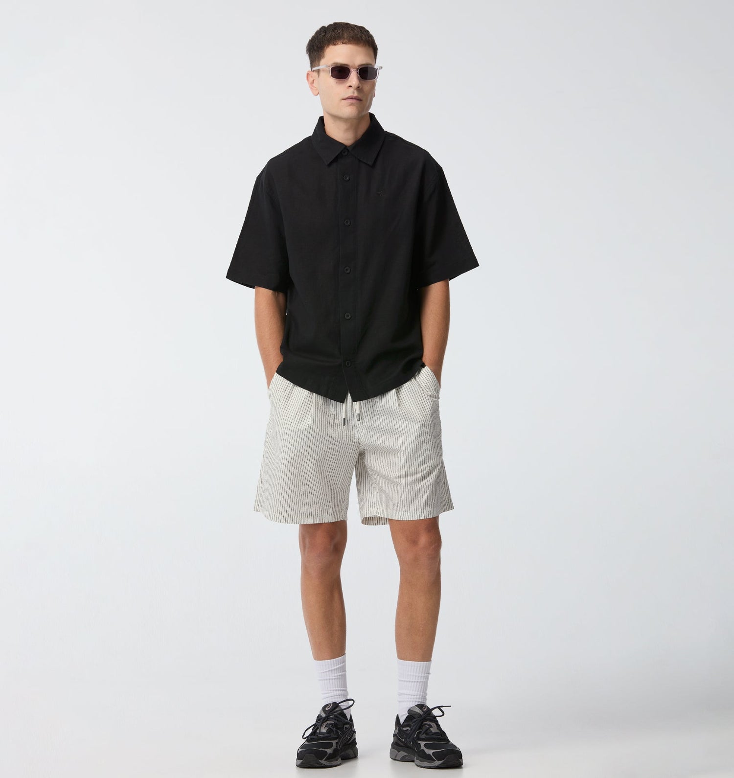 Box Cuban Collar Shirt - White/Black Stripe