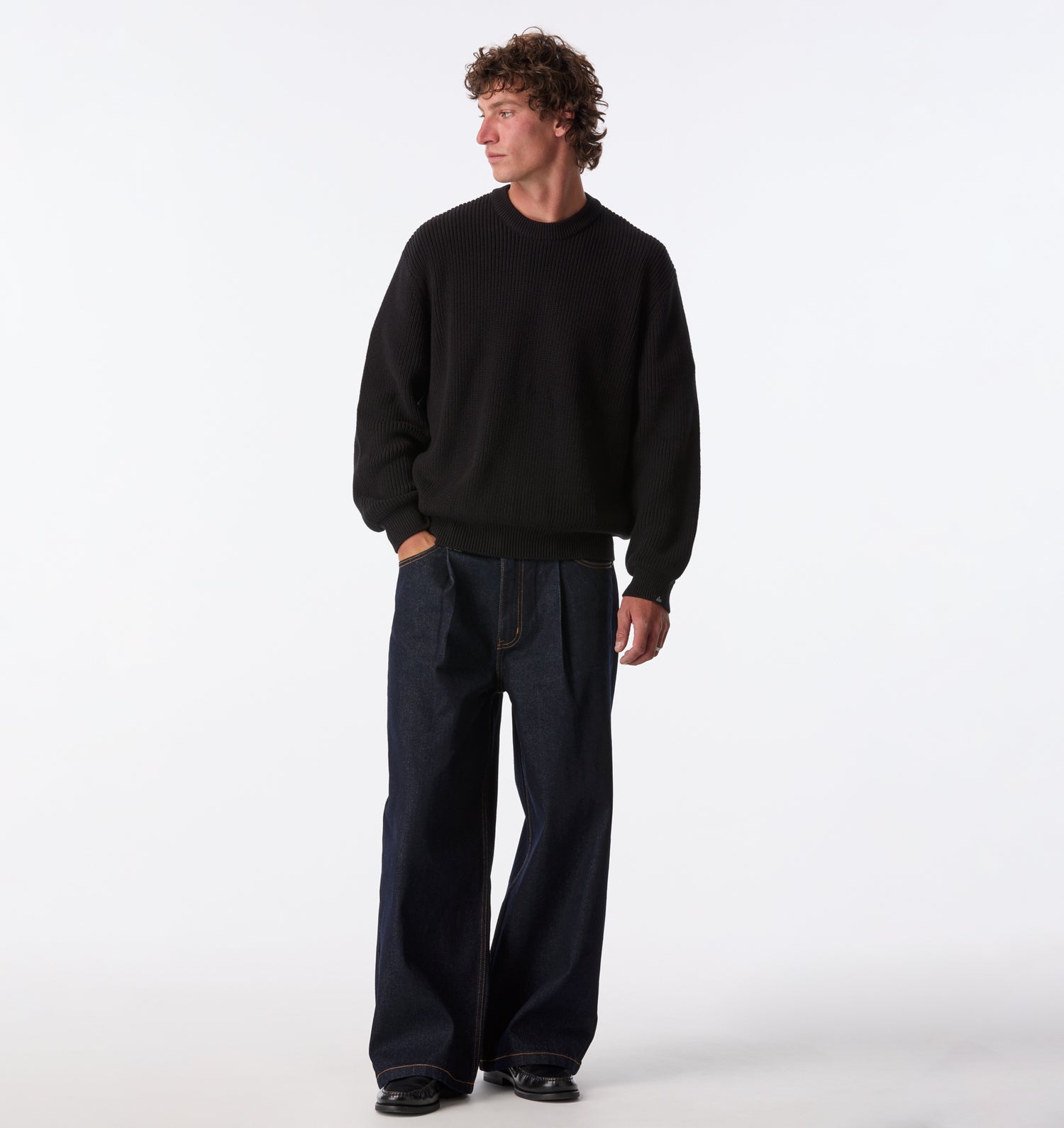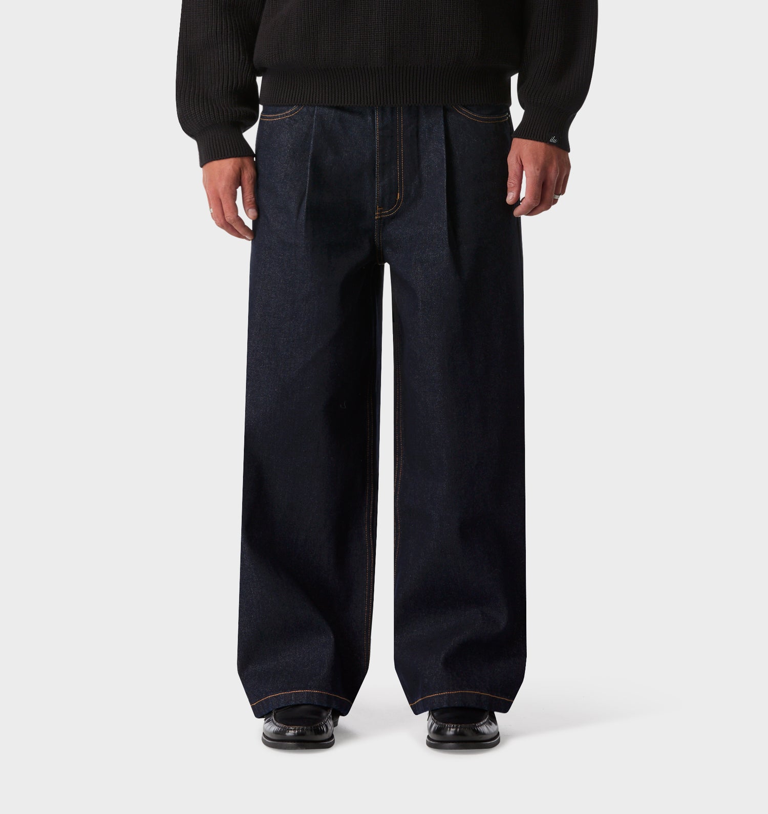 Wide Leg Pleat Denim - Indigo