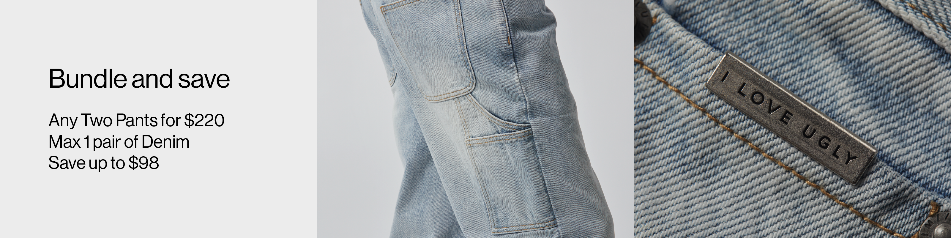 bundle & save. buy a pair of pants & a pair of denim for $220